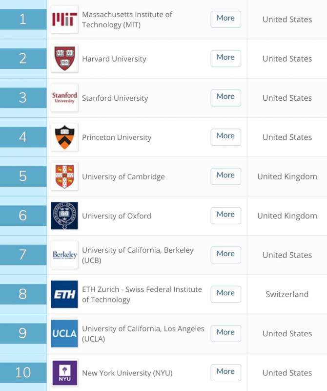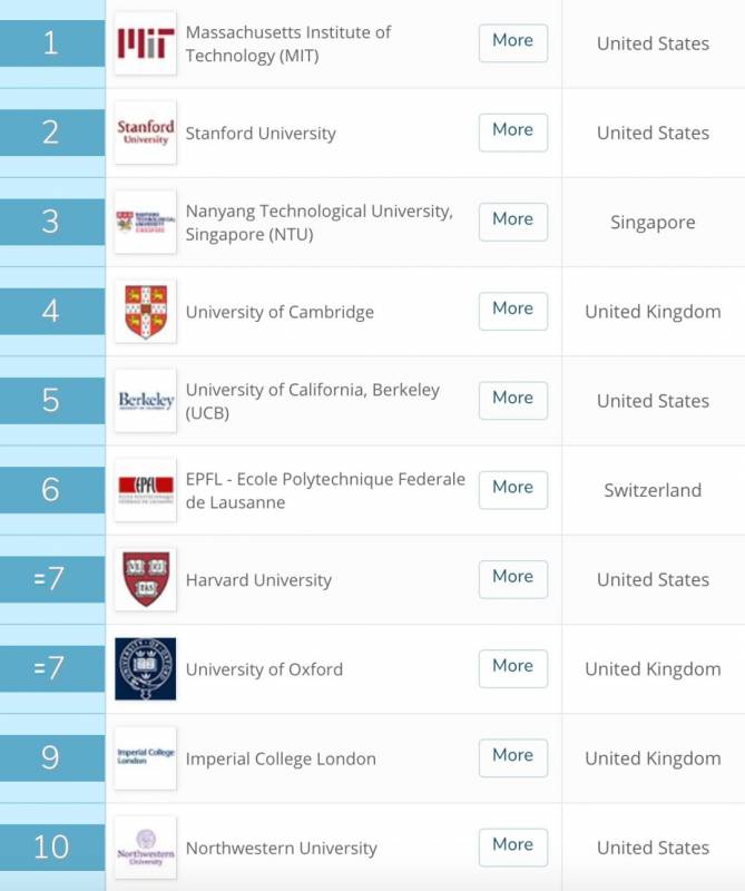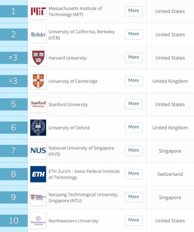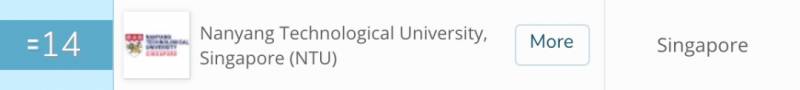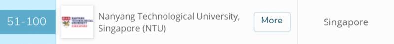 在世界综合大学排名中,NTU 虽低于 NUS 一位,但让人惊讶的是 NTU 近些年的飞跃。从2012年仅位列世界第47,到如今攀升到世界第12位、亚洲第3、建校50年以下的大学第1,可谓潜力无穷。