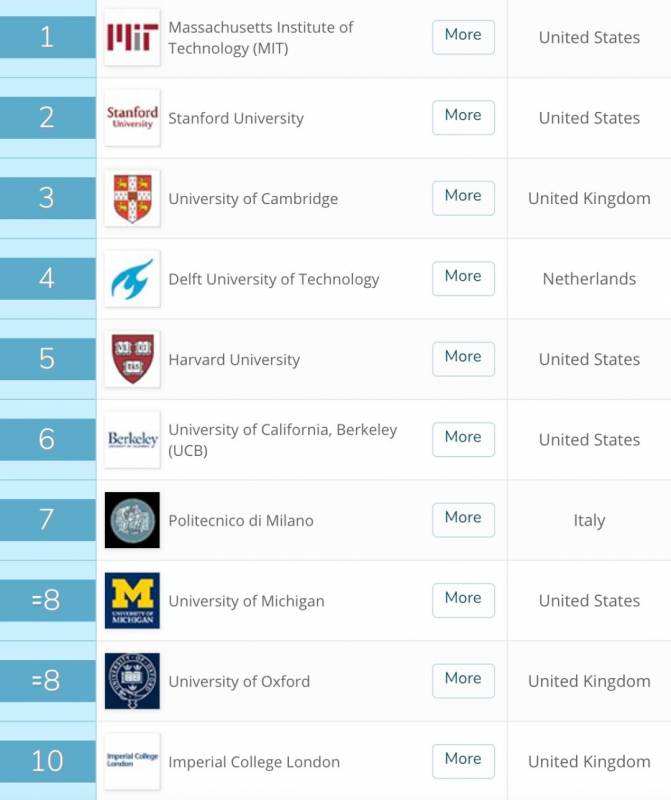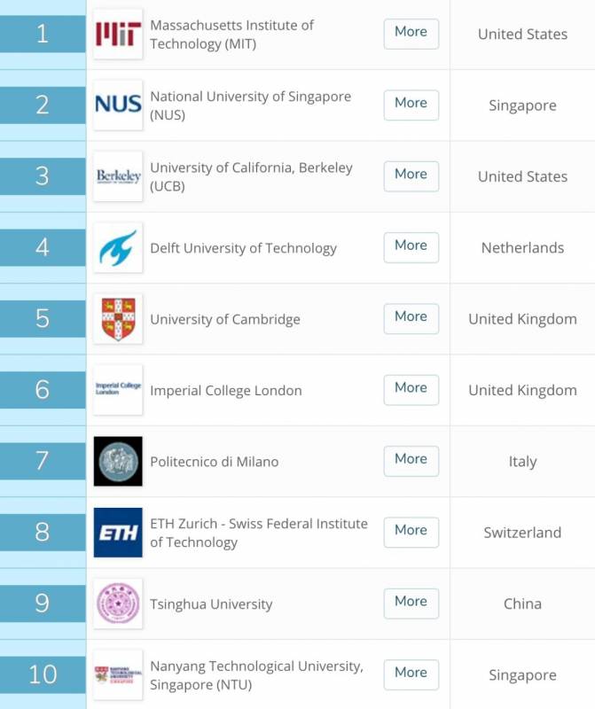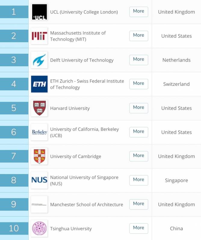 新加坡国立大学(NUS)的建筑学/建筑环境专业,在排名中位列第8位。