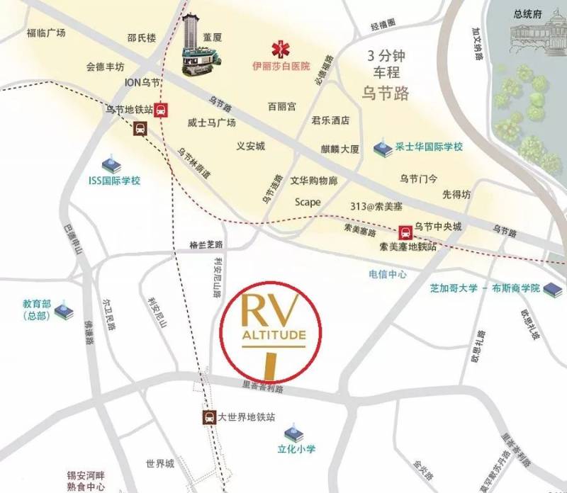 RV Altitude距离索美塞地铁站(Somerset MRT)仅600米。该站营运地铁南北线(MRT North South Line),住户只需往滨海南码头地铁站(Marina South Pier MRT)的方向乘搭1个站就可以抵达多美歌地铁转换站(Dhoby Ghaut MRT)。