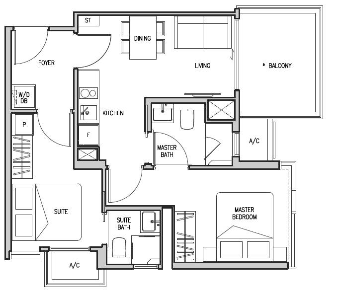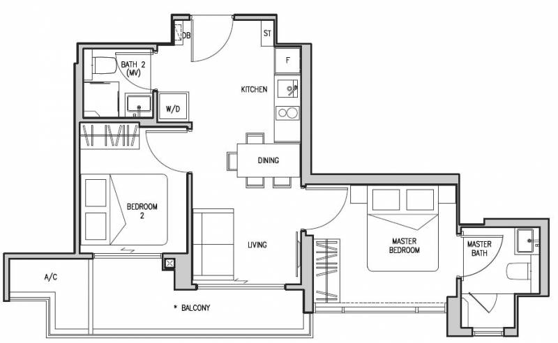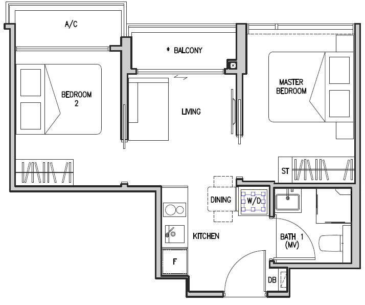 RV Altitude的户型分为舒适型两卧室单位、附加型两卧室(premium)单位、双钥匙型两卧室单位: