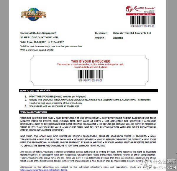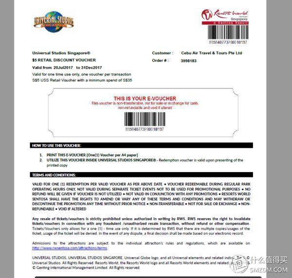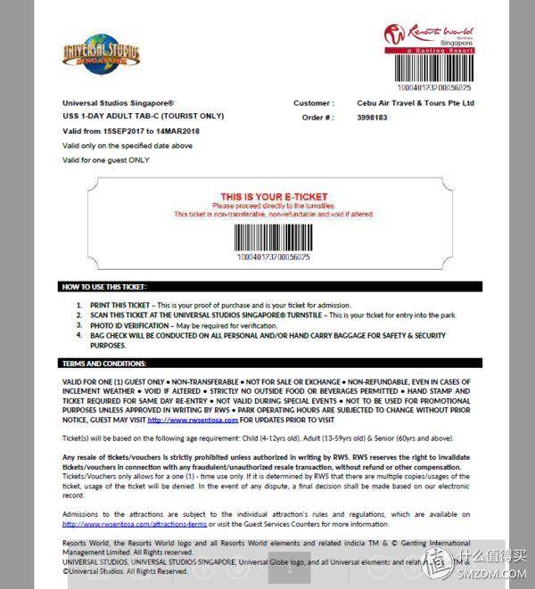 环球影城门票样张如下,不用换票,直接扫码入园,特别方便。现场买是新币76元(折合人民币372元),天宇网店售价人民币339元,还额外附赠用餐抵扣券5新币(满10新币使用)和购物抵扣券5新币(满35新币使用)。值得一提的是,这个电子门票是非指定日的,只要在有效日期之前用掉就可以,比较灵活。
