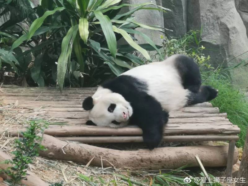 国宝熊猫凯凯和嘉嘉在河川生态园里面,可能熊猫喜凉吧,熊猫馆里气温非常低。我们这一天基本都是在冷热交替下活动我还发现大熊猫的鼻子是粉色的。