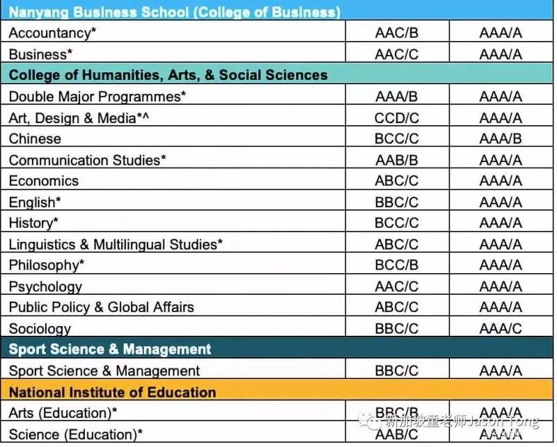 Computer EngineeringAAB/CAAA/AFaculty of SciencePharmacyAAA/AAAA/AScience (Pharmaceutical Science)AAA/AAAA/AScienceAAB/CAAA/AData Science and AnalyticsAAB/CAAA/AScience (Food Science & Technology)AAA/CAAA/ANUS Business SchoolBusiness AdminABB/BAAA/ABusiness Admin (Accountancy)AAB/CAAA/AFaculty of Arts & Social SciencesArts & Social SciencesBBC/BAAA/AArts & Social Sciences (MT related)BCC/BAAA/BEnvironmental Studies (Faculty of Arts & Social Sciences and Faculty of Science)Environmental StudiesAAA/CAAA/A