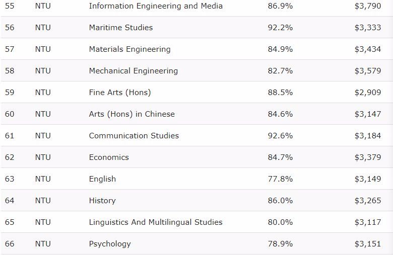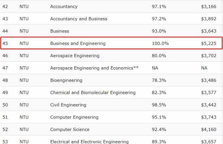 2.NTU-南洋理工学院,商务工程专业的平均月薪高达5225新!
