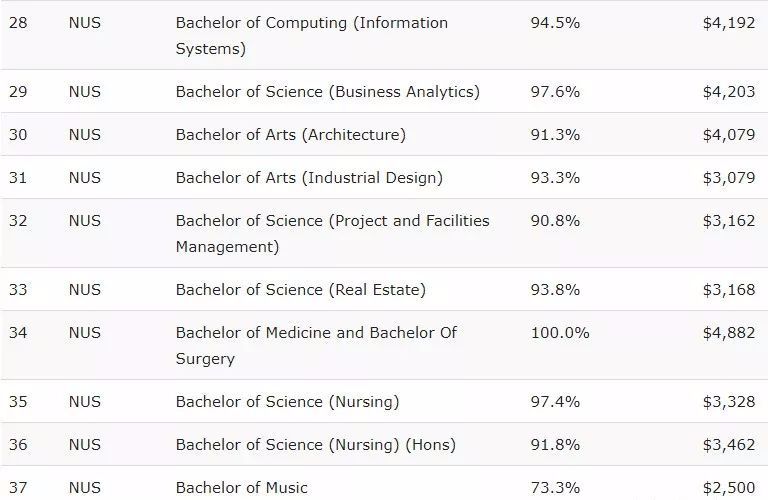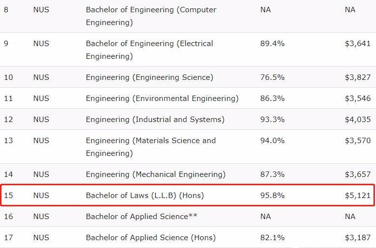 1.NUS-新加坡国立大学。法律的专业的平均月薪最高为5121新。