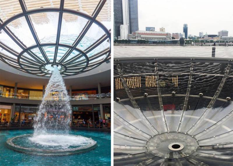 地下层上方设置可以形成瀑布的装置,在地面则是一个透明的大碗,在雨季则可收集雨水形成景观,一说是赌场有人赢了就喷水