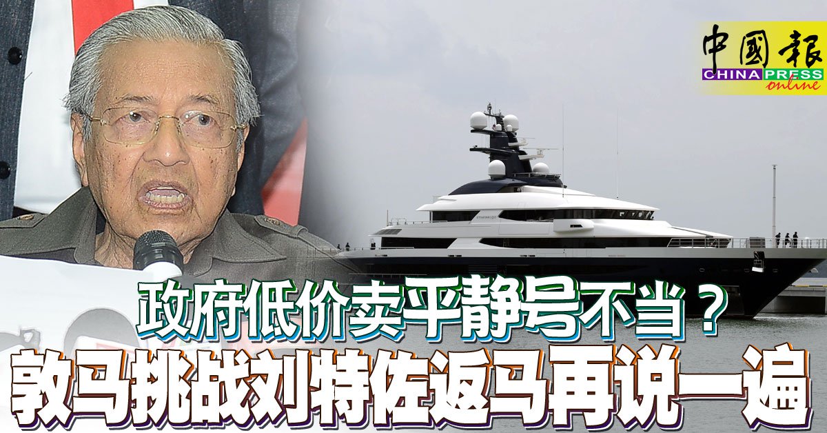 (八打灵再也3日讯)首相敦马哈迪挑战富商刘特佐返马,重复有关政府不当处理豪华游艇“平静号”,导致售价太低的指责。