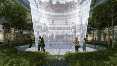 此外,在T1还有一个名叫“雨之舞”的水滴青铜雕塑