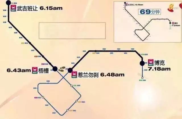 在武吉班让站上车后,能直达博览站,车程69分钟