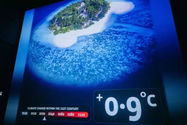 全息影像《+5 Degrees》(升温5度)向我们展示了地球每升高0.5度,对我们的环境会有怎样的影响。如果不想看到城市被淹没、动植物被灭绝、水资源匮乏等情况,我们就得从现在开始,保护环境,与大自然和谐相处。