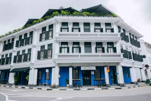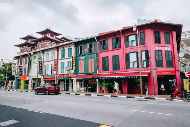 临近的街道也都很好看,南洋建筑风格,色彩缤纷。