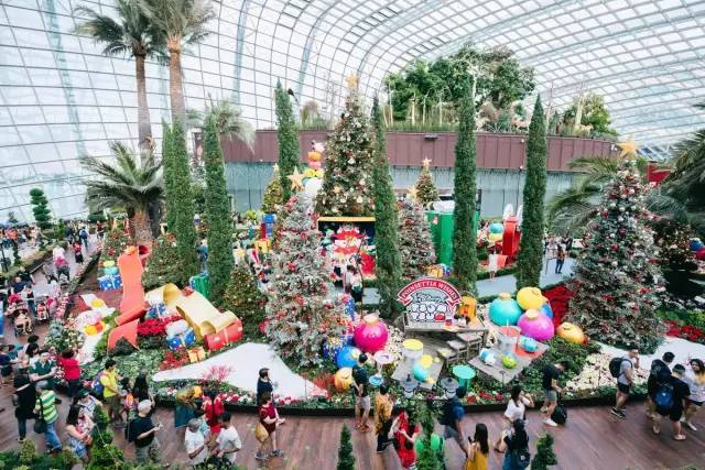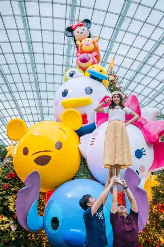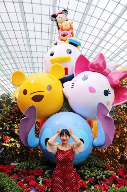 花穹曾在2015年被吉尼斯世界纪录列为“世界上最大的玻璃冷室”。这里主要展示地中海和亚热带地区的鲜花和绿植,可以让你看到不同地区的代表性植物。花穹的花圃区域不定期会举办花卉展,我们去的时候正好遇到了“迪士尼松松主题圣诞心愿”花卉展。 “松松”是什么意思呢“松松”是迪士尼“Tsum Tsum”系列,源自日语tsumu,意为“堆叠”,所以我们在花穹里看到好多迪士尼松松朋友们堆叠在一起,超级可爱。