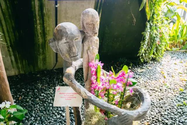 抱着兰花的人。在云雾林看到好多可爱的木雕塑。