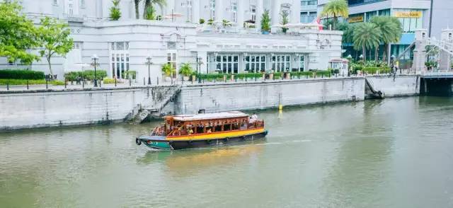 往城市里去的新加坡游船,河两岸是码头,有很多餐厅。