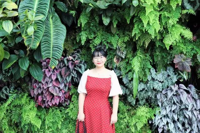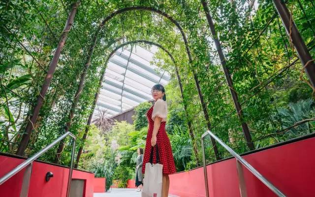 继续往前走,能看到绿色植物墙。丰富的蕨类植物,长得很茂盛。在这里可以拍到ins风网红照哦。