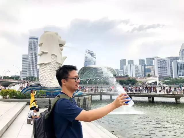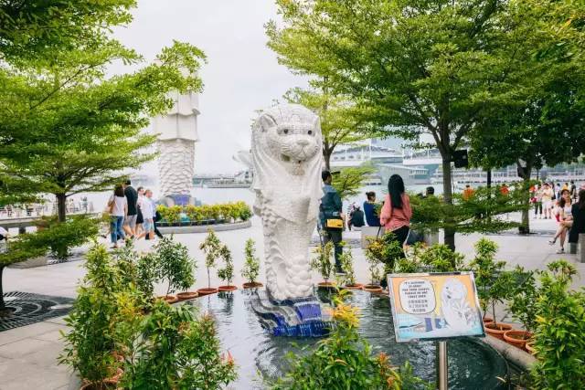 另外新加坡一共有三个鱼尾狮雕塑,一个就是新加坡河边鱼尾狮妈妈,也是我们常见的这个。一个是鱼尾狮妈妈后面公园高2米的鱼尾狮宝宝,就是迷你版本的鱼尾狮。最后一个是超大的鱼尾狮爸爸,在圣淘沙岛上。