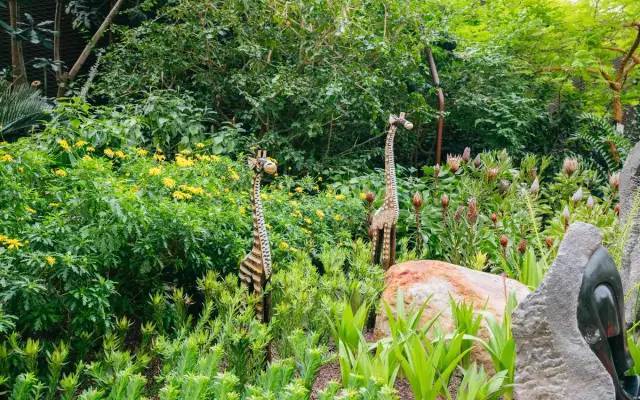 这里的植物种类更多,也多了一些微型植物,可以用放大镜去观看。另外有一些动物雕刻艺术品散落在植物中,营造一种天然感。