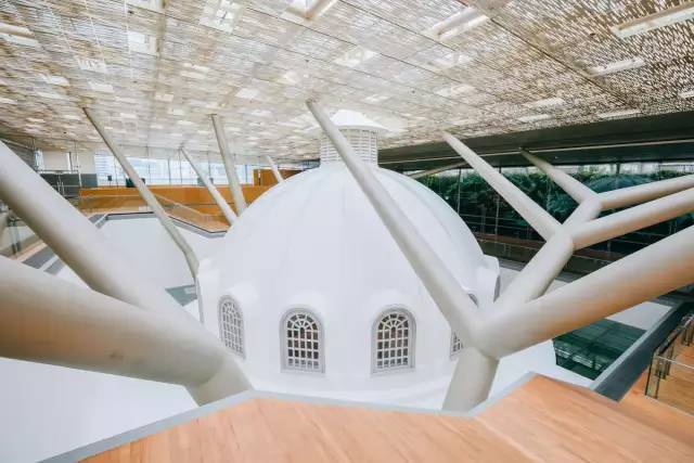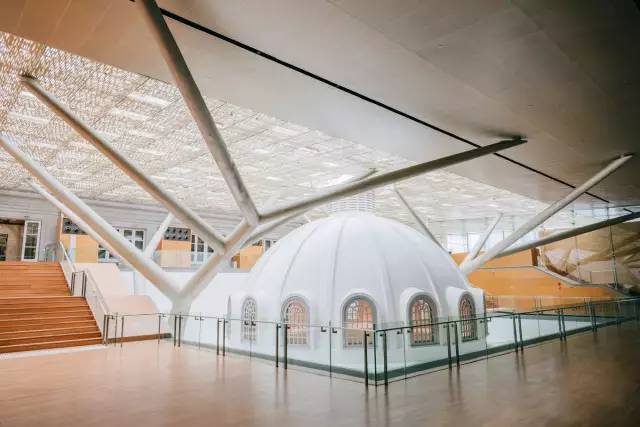 白色穹顶周围是银白色支柱,在整个美术馆都能看到这样的支柱。起码在配色上都保持高度统一了。