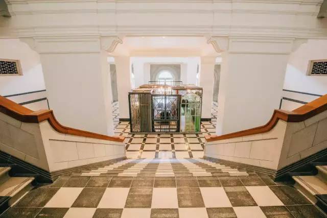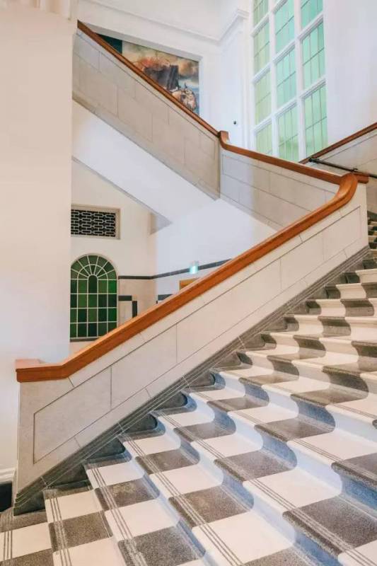 入口走廊有个白色旋转楼梯,很好出片。