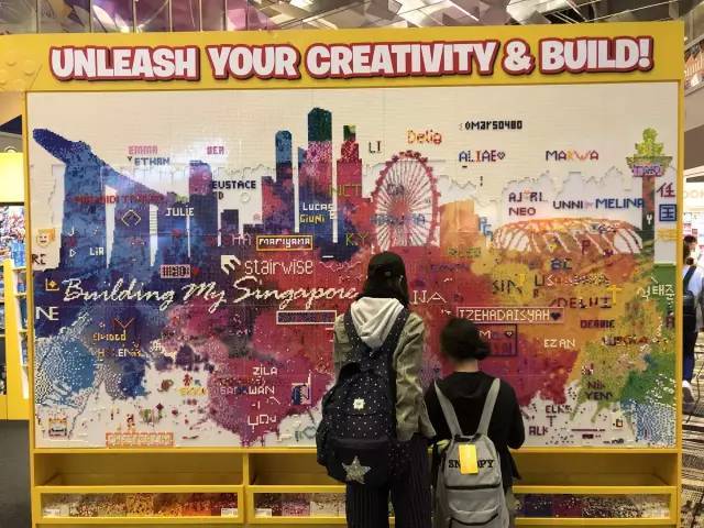 樟宜机场的新加坡主题乐高拼图,自己往上粘,我们粘了英文名,Emma和Ethan。