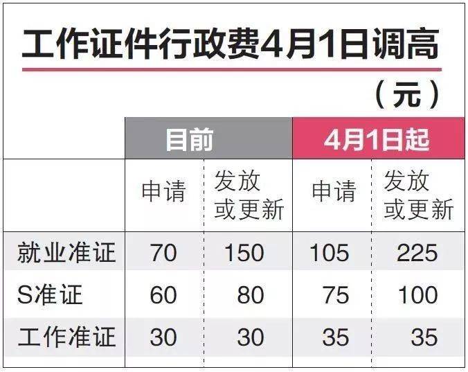 从4月1日起,EP、SP和WP的申请费、证件发放或更新费,将一律调高。一个也不放过!
