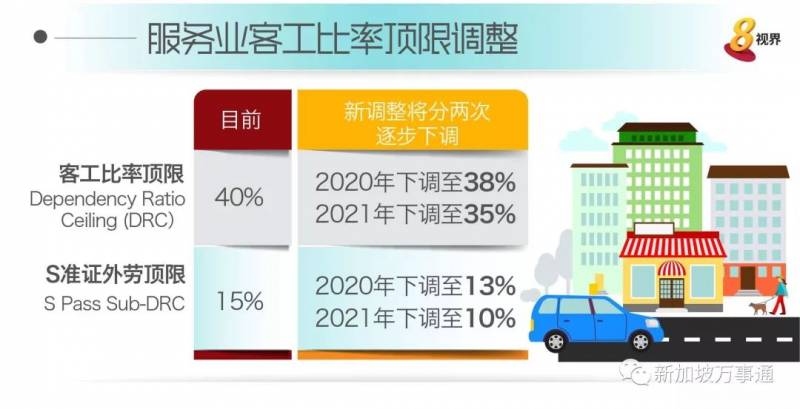 新加坡政府会分两次减少服务业的客工比率顶限(Dependency Ratio Ceiling,简称DRC)。首阶段于明年1月1日将顶限从目前的40%减少到38%,2021年1月1日再降低至35%。