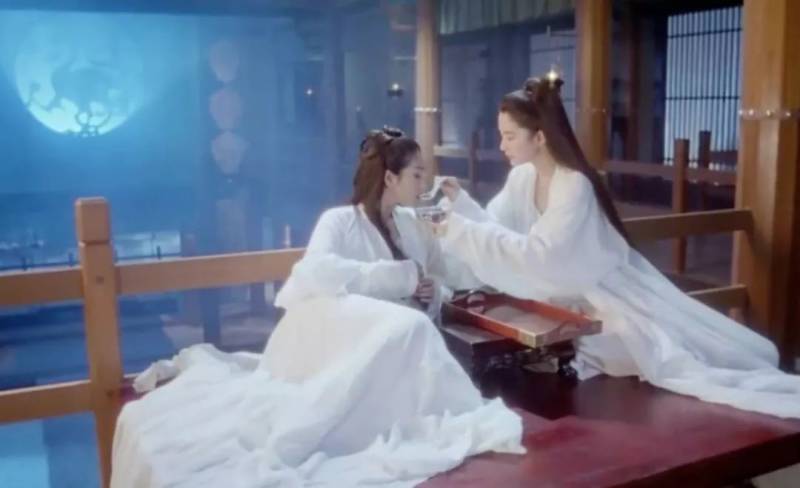 戏中巩俐和林青霞那段饮酒戏,可以说是“百合”题材之楷模。两人都身穿白衣,迎著夜色,宛如那天上的白月光化成了人的模样。