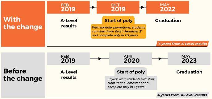 从今年起,有意到理工学院升学的A水准毕业生,可在同年报读理工院,不必等到来临一年。符合条件的学生能免修第一学期,从第二学期开始上课。这么一来,学生可提前一年毕业。