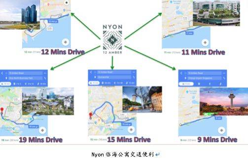 9分钟抵达樟宜机场、11分钟至樟宜商业园、12分钟抵达滨海湾、15分钟到达抵达乌节商业圈、19分钟抵达纬壹科技园。