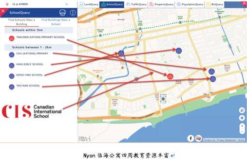 项目500米范围内还有国际学校采士华国际学校(东区校园)(Chatsworth International School (East Campus))和加拿大国际学校(丹绒加东校园)(Canadian International School (Tanjong Katong Campus))等。