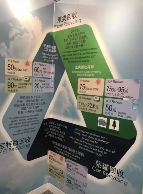 当然在新加坡的学校里,小学生会每周做环保的活动,学校会教导学生如何垃圾分类。环保意识从小培养。