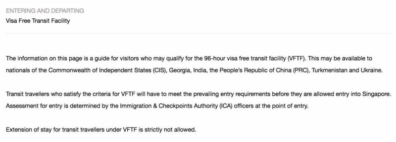 红领巾去新加坡移民厅网站查询了有关过境签证 (Visa Free Transit Facility) 相关词条,
