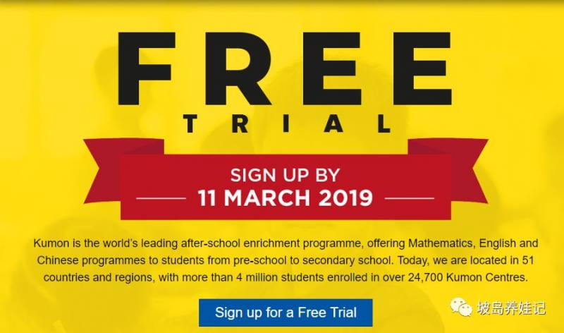 之前五妈整理的2019新加坡TOP补习中心里的Kumon在3月11号之前注册的学生提供免费试课咯。