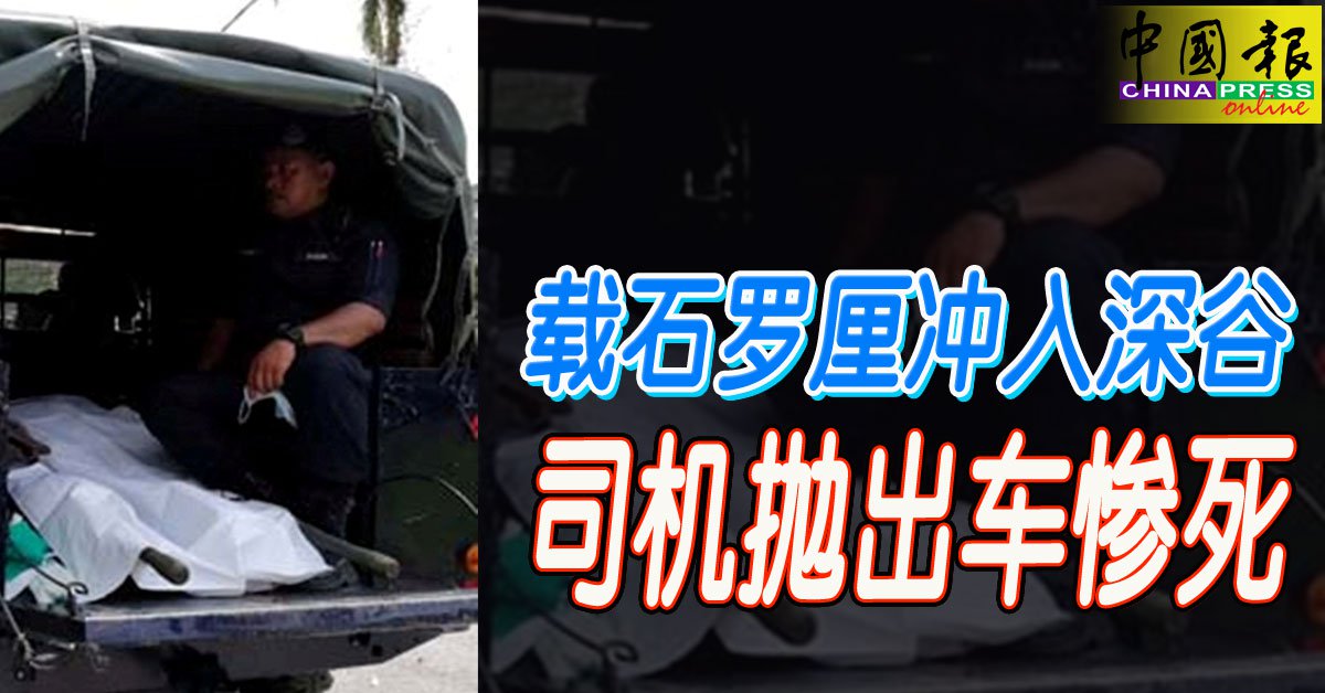 (民都鲁11日讯)满载石头的罗厘失控冲入路旁深谷,导致男司机被抛出车外惨死!