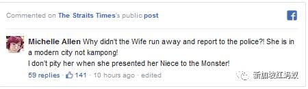 这个网民怒斥:“为什么她不逃跑并报警?她生活在一个现代城市,不是甘榜(乡村)!当她把外甥女送到恶魔手上时,我不可怜她。”