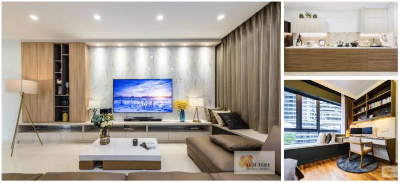 各种柜体、木吊顶,木隔墙等(交叉进行),一般木工的周期也是比较长的,当然也根据家里做的柜子的多少和设计难易程度而不同。这个阶段要注意做好地面墙面保护。木工的一些细节问题可以在木工测量之后一起沟通,设计师的设计和实际的施工多少还是有些偏差的所以具体还要以施工现场为准。需要您了解的是,与中国不同,新加坡为了确保施工现场干净整洁不扰民,一般木工会在工厂做好,再拿去装修现场安装。
