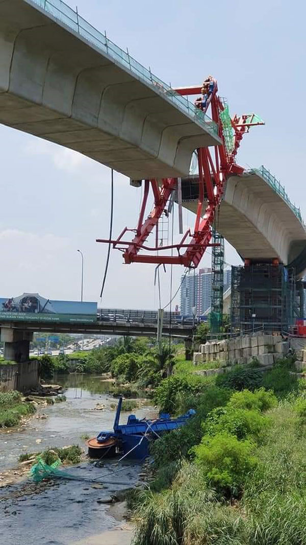 马矿业金务大巴生谷捷运私人有限公司(MMC-Gamuda KVMRT)发表文告确认,在靠近瓜雪路(Jalan Kuala Selangor)工地,即加西河(Sungai Gasi)上方施工期间,发生分段起重机(segment lifter)倒塌事件。