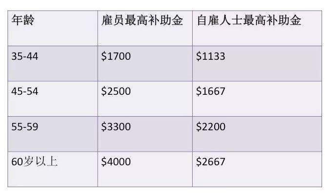 政府将在2020年调高就业入息补助金的收入顶限,从2000新币增加到2300新币。每年最高补助金也按年龄增加,60岁以上,月入低于1200新币的员工可获得高达4000新币的补助金。