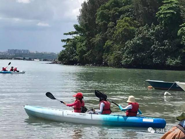 三个小孩就这样在海上划著皮艇