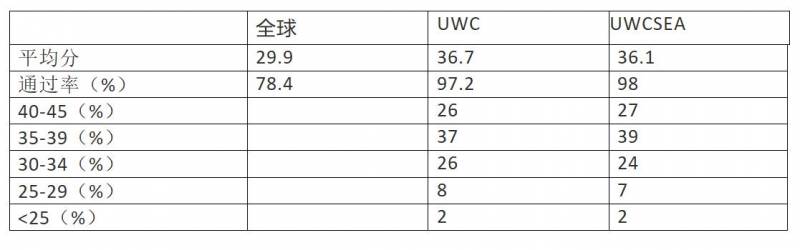 IB满分45分,36分以上就可以申请欧美很好的大学,40分以上可以考虑申请哈佛,耶鲁这样的学校了。从数据看,有UWC 有60%以上学生成绩在35分以上。你看了有没有把孩子立刻塞进去的冲动?