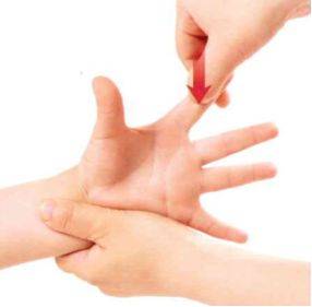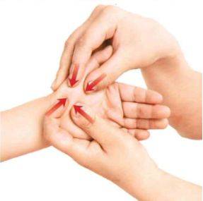 3.掐揉四横纹: 从食指至小指逐一掐揉10遍。