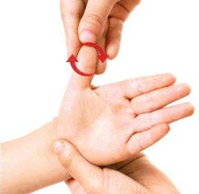 2.捏挤板门: 双手拇指与食指,共四指相对,捏挤约10次。
