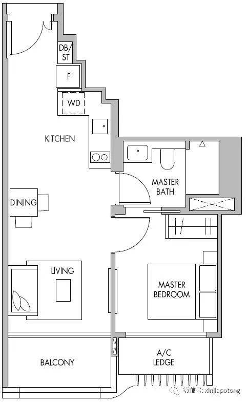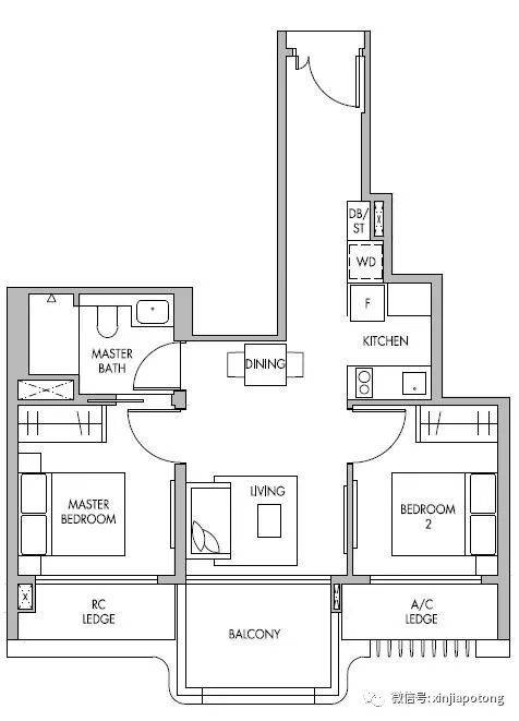 两室一厅户型,面积为57平方米,河景和游泳池朝向,厕所居然带窗口,厨房安装一扇门就可以改为封闭式,价格98万新币起