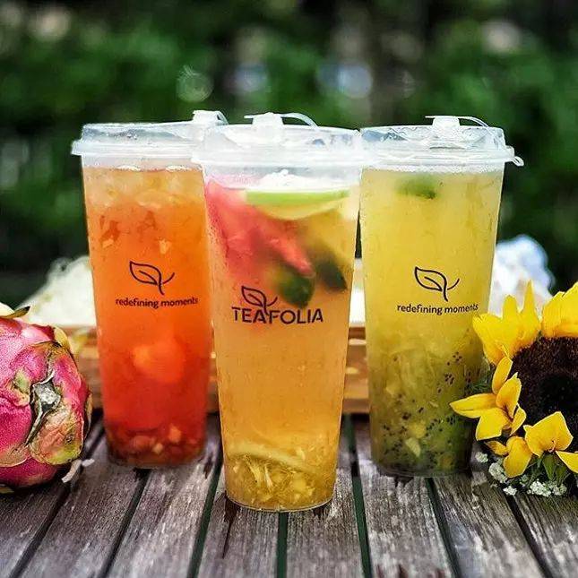 另一家水果茶店Teafolia在新加坡东部崛起,两家分店一家在Tampines一家在Bedok。Teafolia水果茶中的水果,倾向于弄的比较小或者是直接捣烂,茶的话有来自台湾的四季春茶、斯里兰卡的锡兰红茶还有绿茶。
