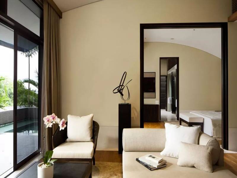 室内设计则由已故印尼设计师Jaya Ibrahim负责,他设计的酒店有北京颐和安缦、杭州法云安缦以及上海璞丽等。嘉佩乐的设计风格是以雅致的灰褐色为主基调,点缀以充满亚洲风情的艺术装饰和家具,极具现代感。房间内摆放的艺术品,还有环境照明的使用,营造出Jaya个人所特有的空间氛围感,浴室则多为大理石质地,还有原木橱柜和绒毛地毯更能体现出酒店的奢华与品质。