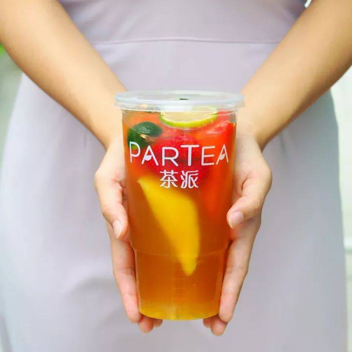 Partea茶派专注于做芝士茶和水果茶,这里的水果茶超大一杯,里面有每天新鲜运到的水果:芒果、西瓜、草莓、青柠、百香果等,里面的茶可以从三种不同的茶里面选,最推荐高山乌龙。