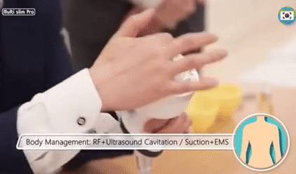 这款仪器的原理是利用RF高周波、EMS中周波等打散并溶解脂肪,并利用Suction抽吸的方式来紧致松弛的皮肤,达到既能帮助脂肪更好更快地排出体外,又能精致因瘦身而松弛的皮肤的目的。