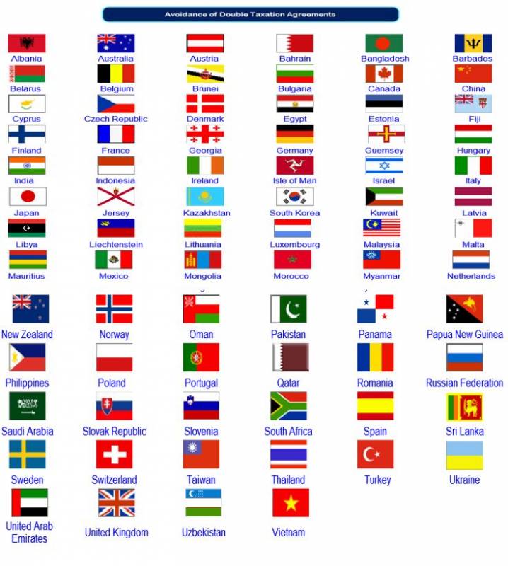 新加坡与50多个国家有广泛的避免双重征税协定(DTA)。这些协定旨在确保新加坡和条约国之间的经济交易不遭受双重征税。此外,新加坡为没有DTA的国家提供单边税收抵免(UTCs)。因此,新加坡税务居民公司不太可能遭受双重征税。新加坡与以下国家都签署了免双重征税协定。如澳洲、加拿大、中国、英国、日本等大国。