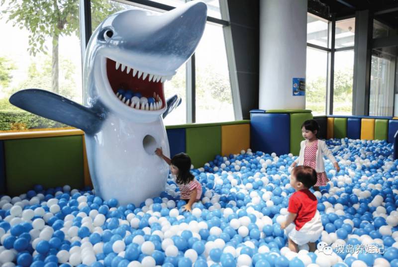 室内游乐场少不了孩子最爱的海洋球,来和鲨鱼先生畅游在蓝白色的海洋里吧。虽然鲨鱼先生长满了牙,但他超级温柔,只爱吃海洋球。小朋友们可以试着给鲨鱼先生喂食,看看海洋球能不能进到它的肚子里。