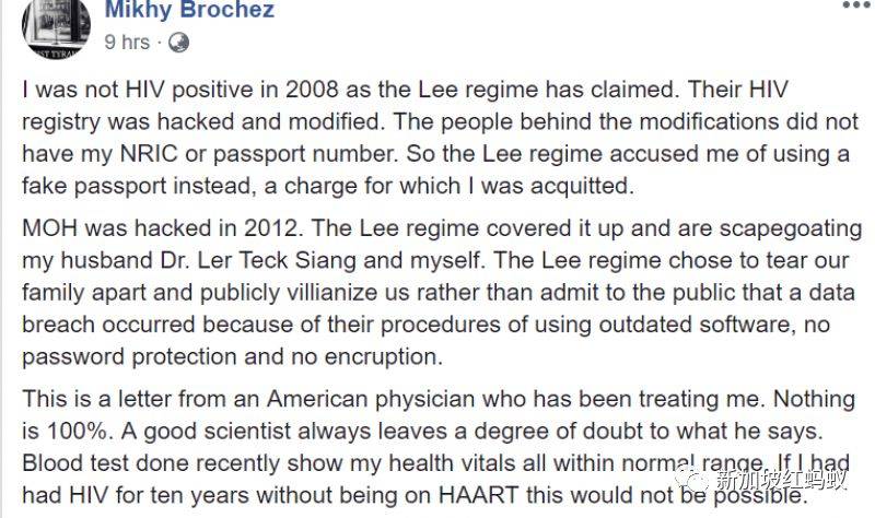 卫生部是在2012年被黑客入侵,但政府企图遮掩这件事,所以让我和丈夫吕德祥医生成了替罪羊。新加坡政府选择拆散我们的家庭,还让我们恶名昭彰。他们不愿向公众坦承这是因为他们使用了老旧的软件、而且机密资料不设密码就能登录,也没有额外加密程序,才导致资料遭入侵。